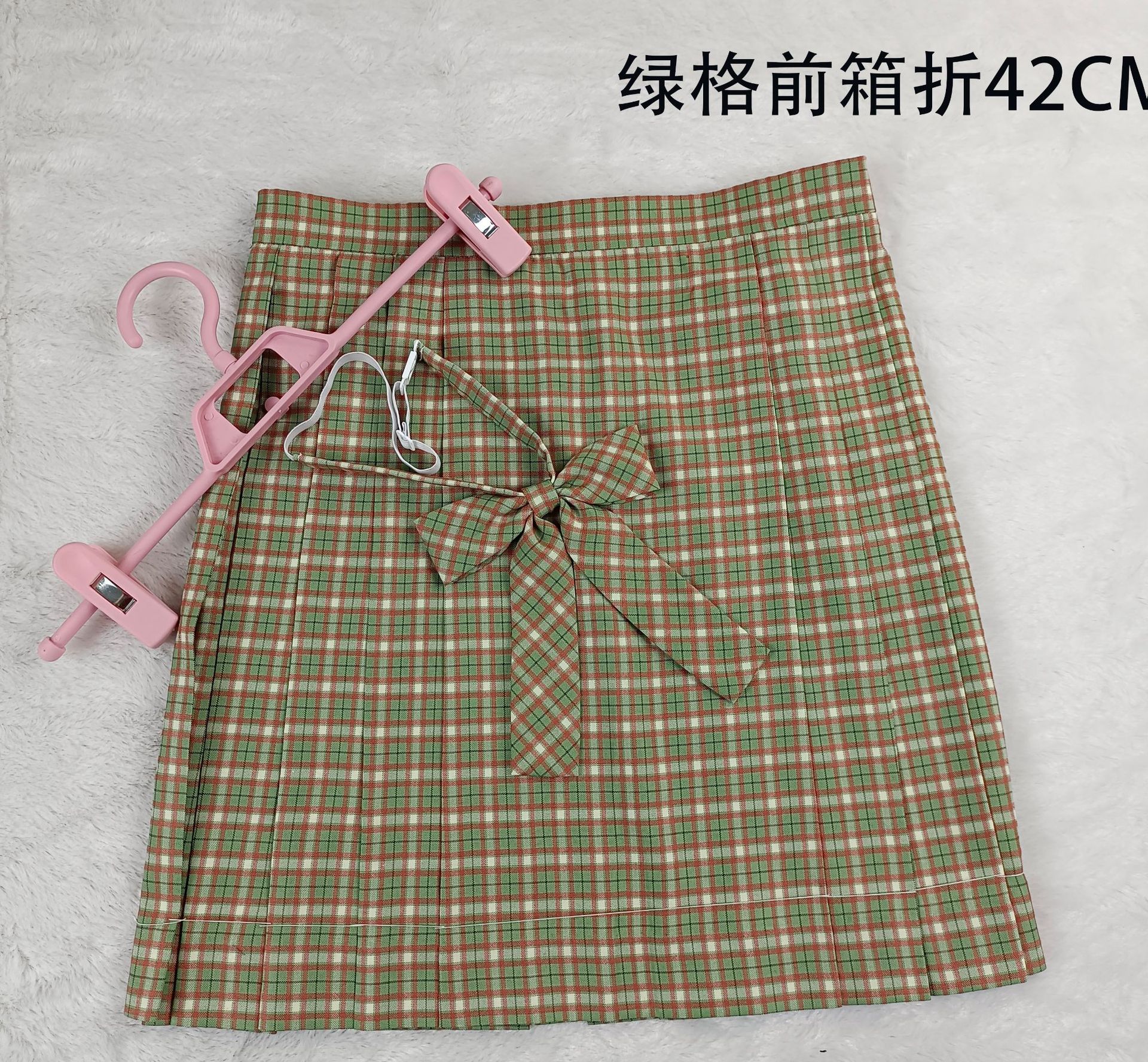 [Hijau kotak-kotak depan kotak lipit] selesai kotak-kotak gaya Jepang Orthodox JK seragam rok lipit rok kotak-kotak 42cm