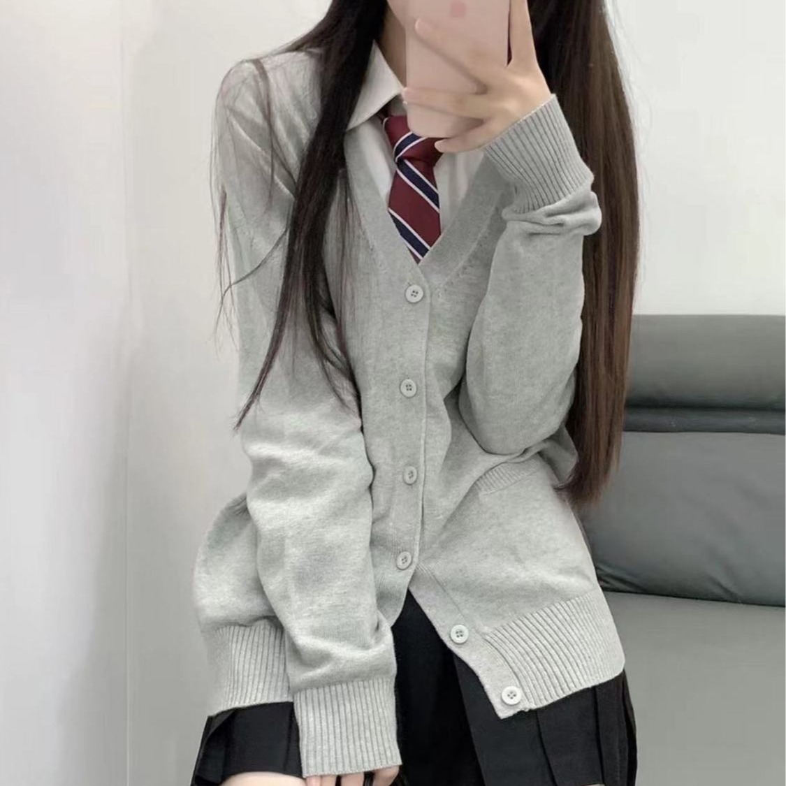Jaket Musim Semi Musim Gugur Mudah Dipadu Padan Longgar Kerah V Model Dasar Kardigan Sweater Kardigan Seragam JK Gaya Jepang
