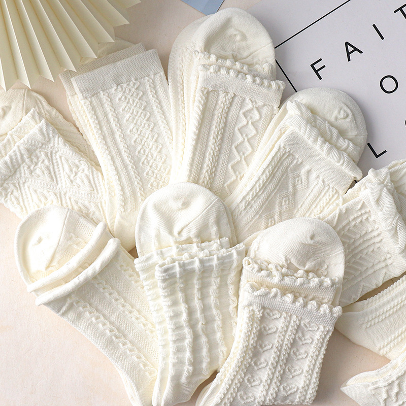 Kaus kaki jk putih kaus kaki panjang setengah betis wanita kaus kaki katun seragam populer musim semi dan musim gugur kaus kaki tumpukan gaya Jepang lucu kaus kaki stoking putih murni