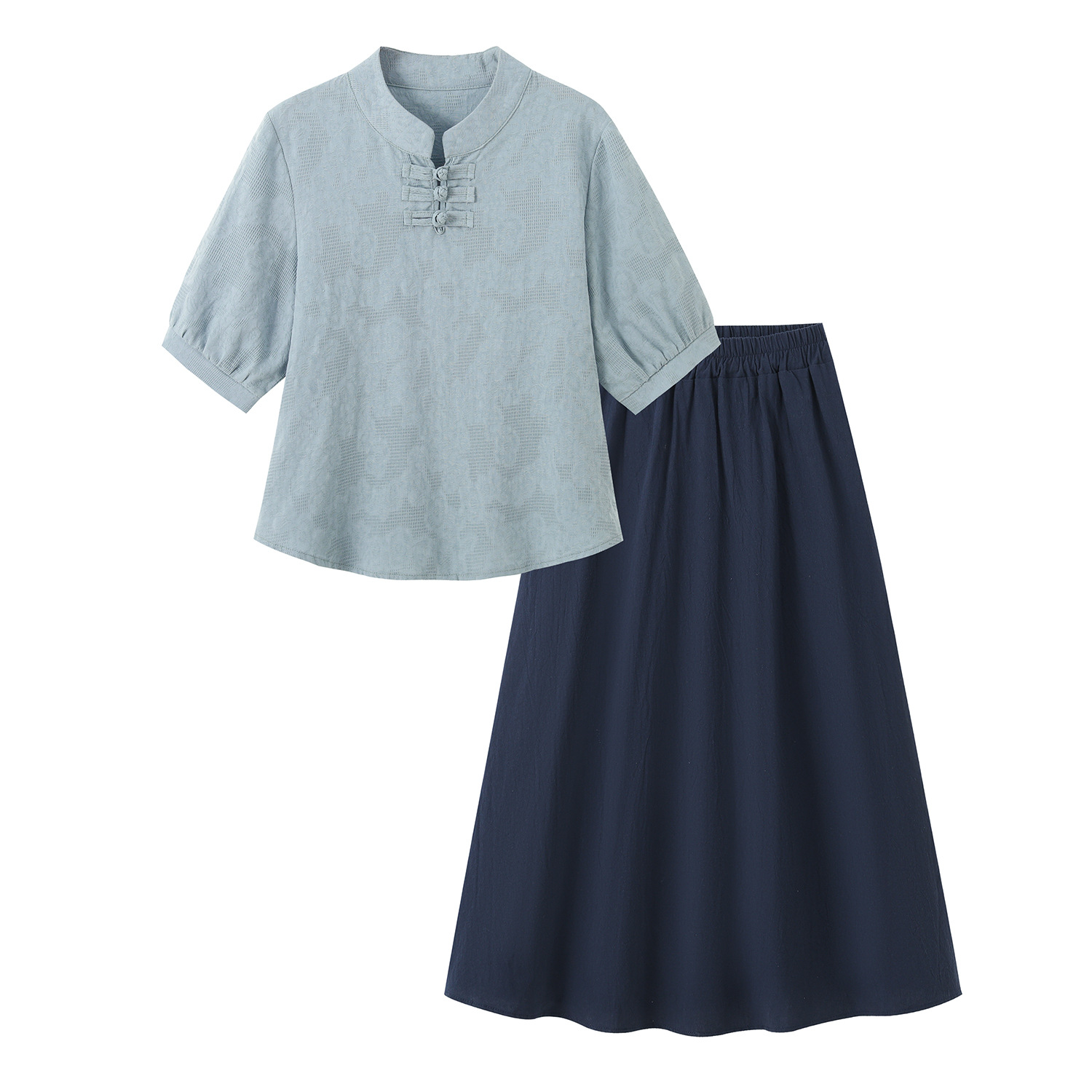 Pakaian Wanita Gaya Tiongkok Pakaian Teh Gaya Cina Musim Panas Model Baru Baju Atasan Set Setengah Rok Pakaian Kelas 4 Mei Gaya Republik Tiongkok