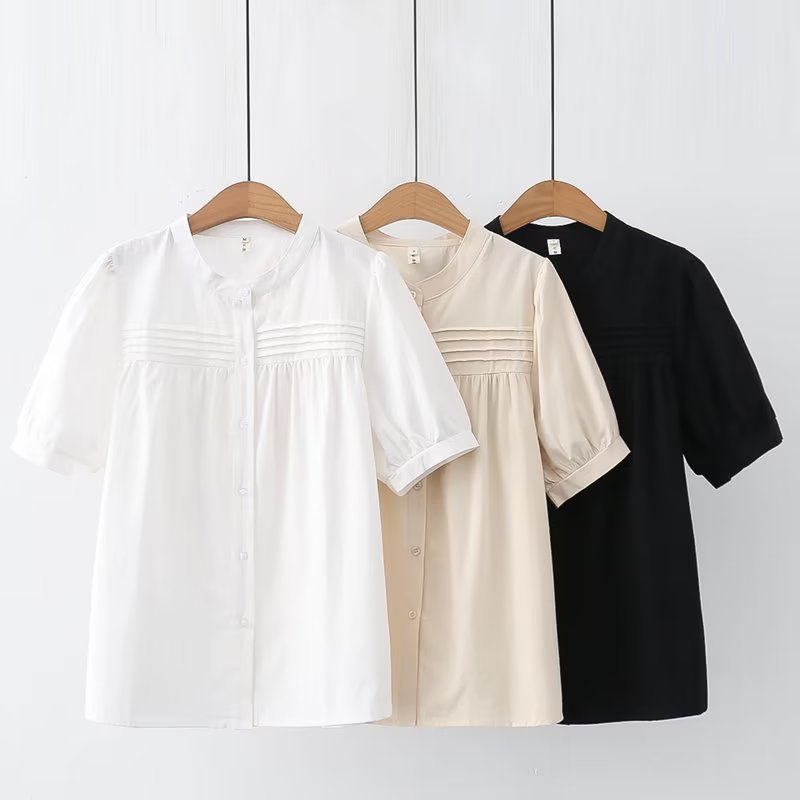 2023 musim panas baru kartun berlipat kerah berdiri lengan pendek kardigan kemeja pelajar wanita grosir