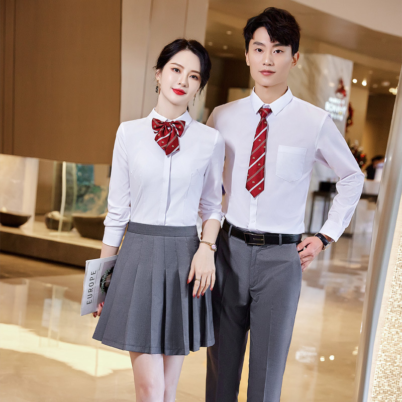 LLY-913 musim semi baru kemeja putih pakaian formal laki-laki dan perempuan siswa pakaian bisnis yang sama kemeja lengan panjang kelas kerja pakaian