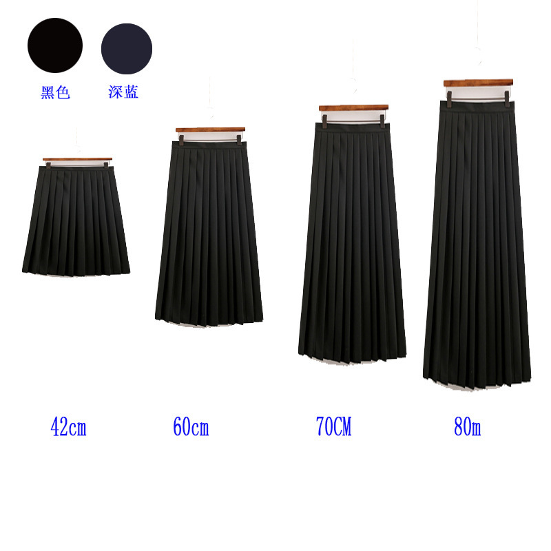 Rok midi hitam JK rok lipit suhu tinggi berlipat tajam dengan garis posisi 42,60cm70, 80CM