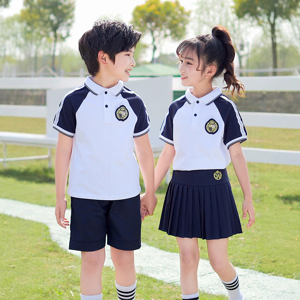 Setelan seragam sekolah menengah, pakaian olahraga siswa SMP lengan pendek, gaya kuliah musim panas