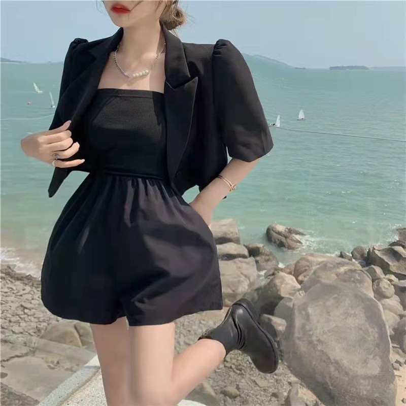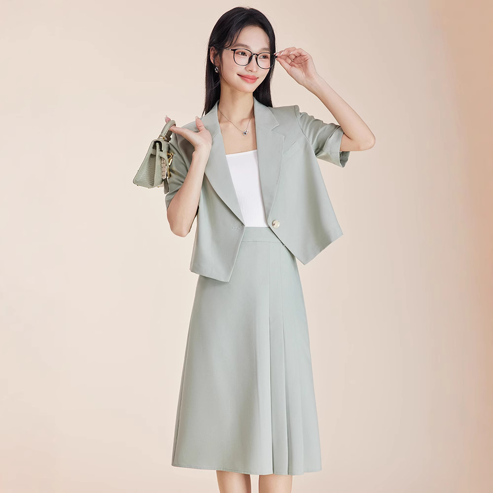 Jaket setelan tipis kasual baru, dua potong kecil lengan pendek, atasan setelan pendek musim panas