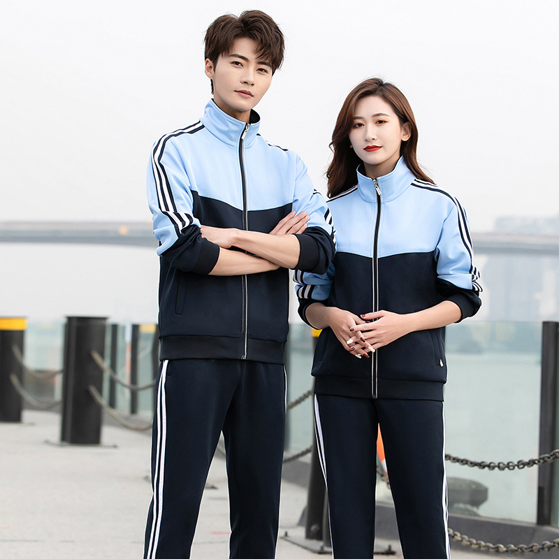 Produk Baru 21 Seragam Sekolah Dasar Biru, Seragam Kelas SMP Hitam Putih Oranye Setelan Pakaian Olahraga Ukuran Besar Pembelian Kelompok