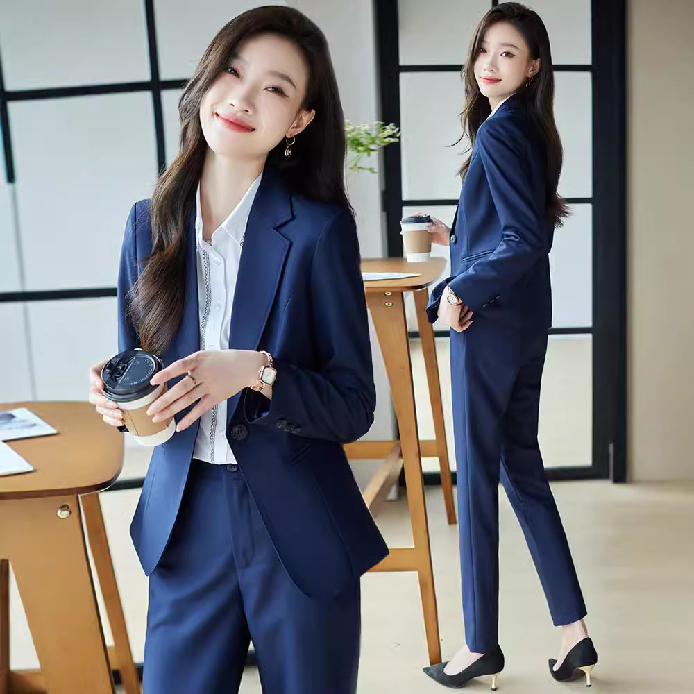 Pakaian bisnis biru dongker setelan wanita musim gugur departemen penjualan universitas mahasiswa PNS wawancara resmi jaket setelan formal kelas atas