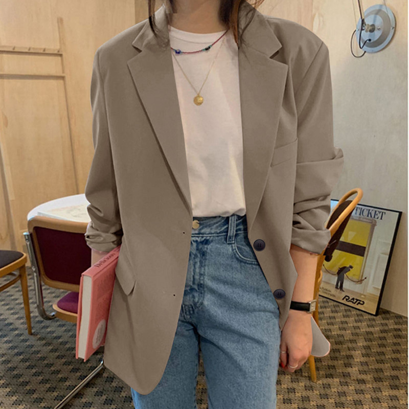 Jaket setelan khaki rasa desain niche jaket kasual retro pendek pelajar kecil musim semi dan musim gugur wanita