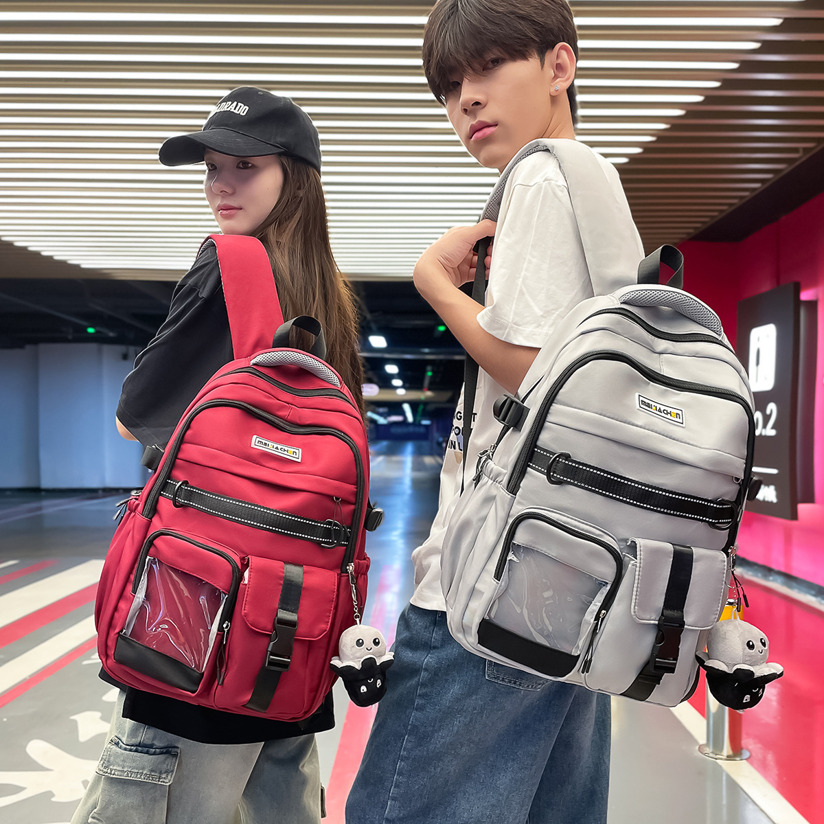 复古工装大容量书包女韩版高中学生初中生撞色双肩包男旅行背包