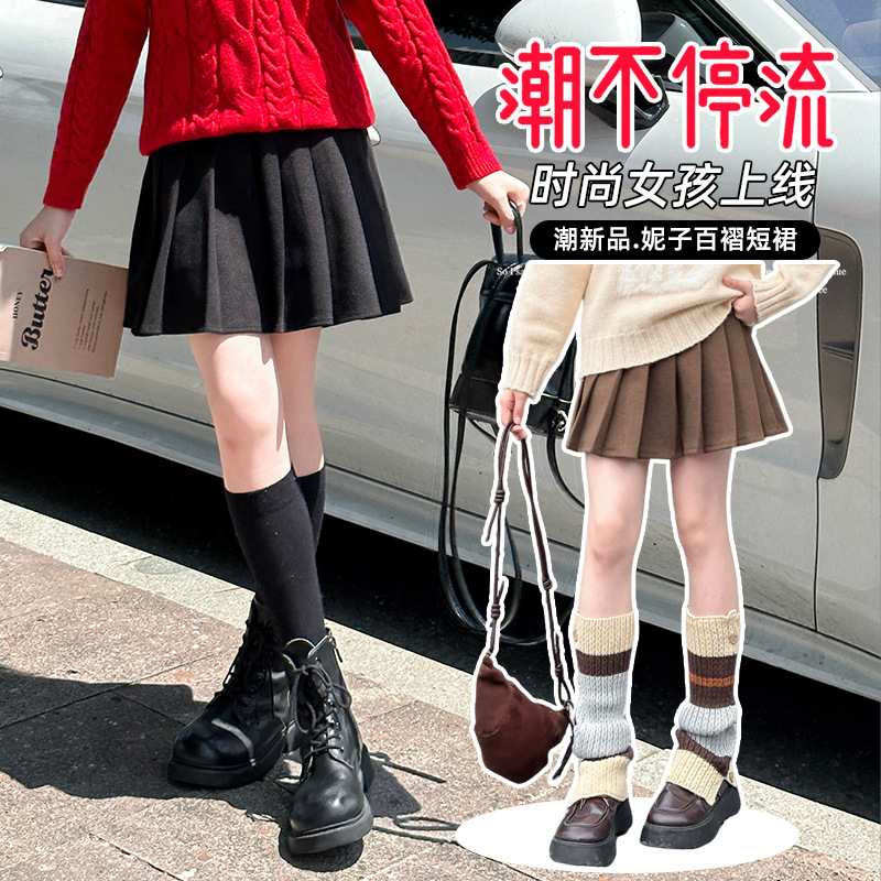 Rok Lipit Seragam JK Anak Perempuan Rok Setengah Badan Model Baru Musim Semi Musim Gugur Musim Dingin 2024 Rok Pendek Wol Instagram Model Jepang dan Korea