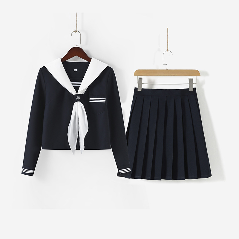 Pasokan pabrik bordir abu-abu tiga gaya kuliah Jepang setelan pelaut setelan bordir abu-abu tiga rok lipit seragam JK