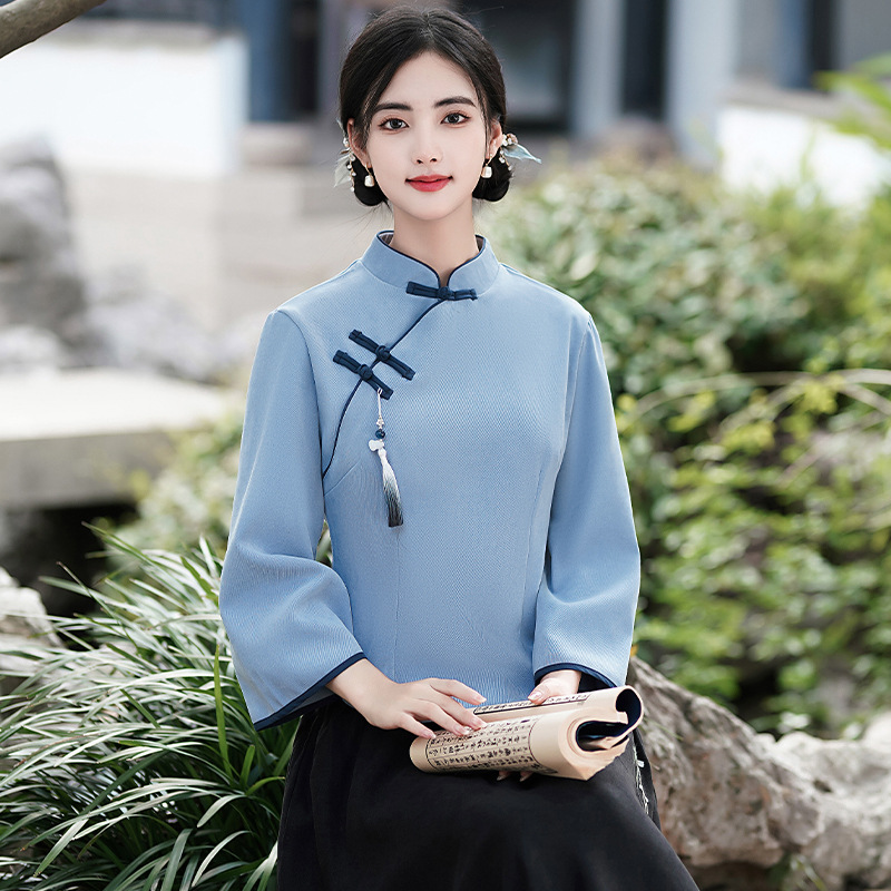 Pembelian Grup Cheongsam Pelajar Retro Model Baru Pakaian Han Pakaian Wanita Kardigan Miring Kancing Baju Teh Versi Muda Setelan Dua Potong Pakaian Tang Wanita