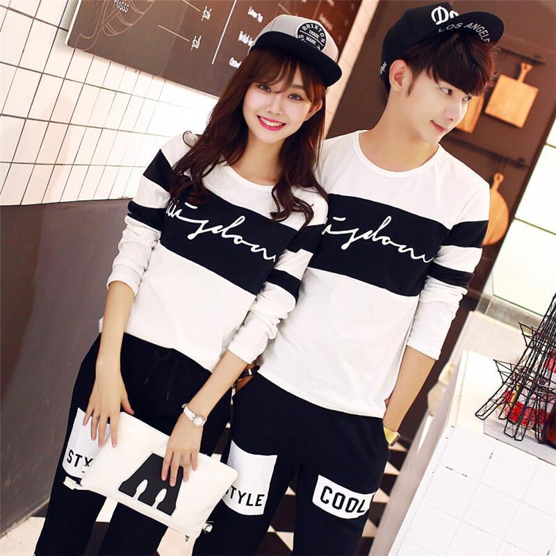 Pakaian Pasangan 2024 Kaus Lengan Panjang Pria Baru Ukuran Besar Kemeja Dasar Huruf Cetak Seragam Kelas Siswa Uniseks Pelangsing Ukuran Besar.