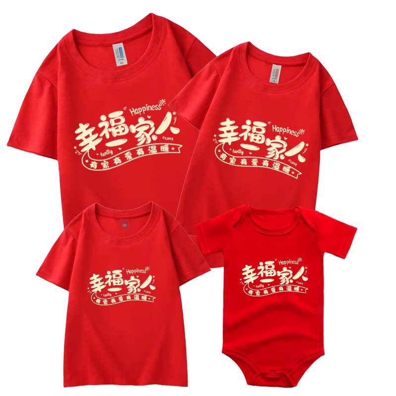 新年装生肖短袖T恤幸福一家人精棉童装 情侣 亲子装夏装新款班服