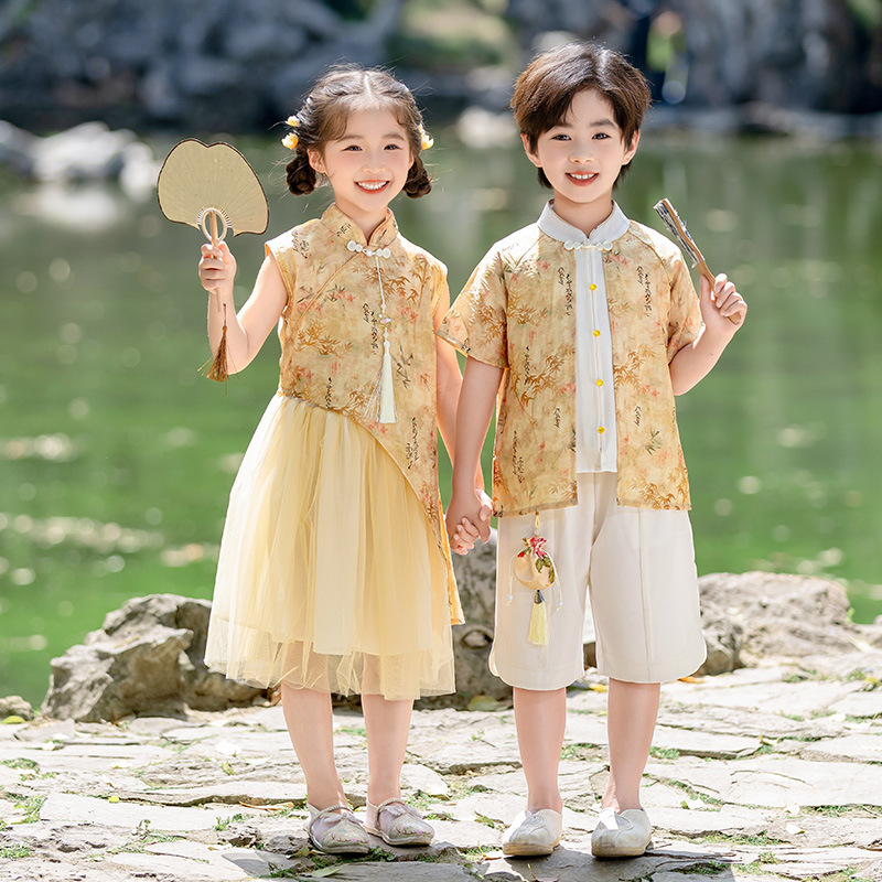Pakaian paduan suara anak perempuan, pakaian olahraga anak SD sekolah dasar cheongsam, pakaian kinerja anak laki-laki