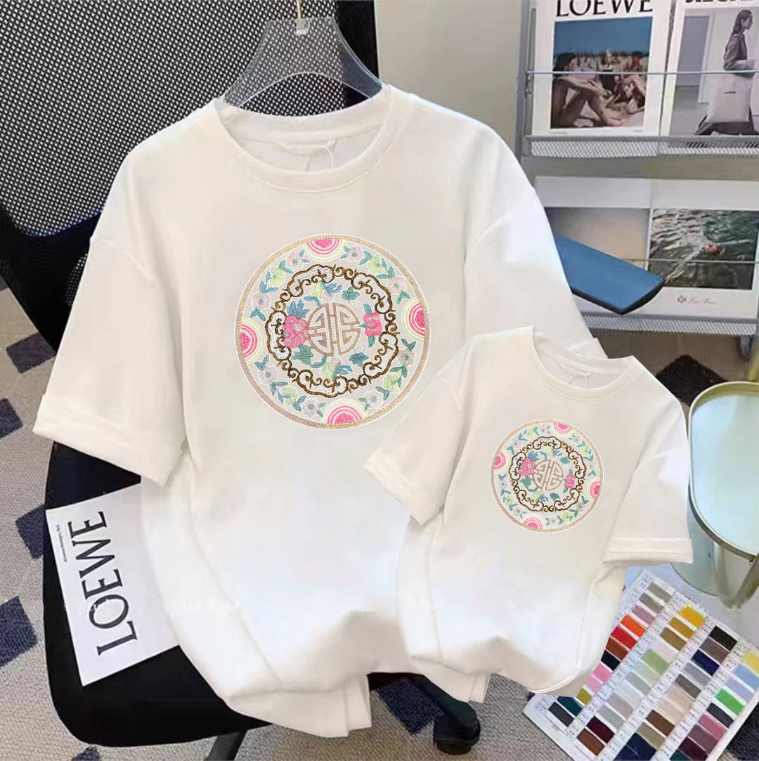 Pakaian lengan pendek orang tua anak, pakaian keluarga modis Nasional Tiongkok baru, pakaian keluarga tiga mulut empat mulut untuk perjalanan orang tua dan anak