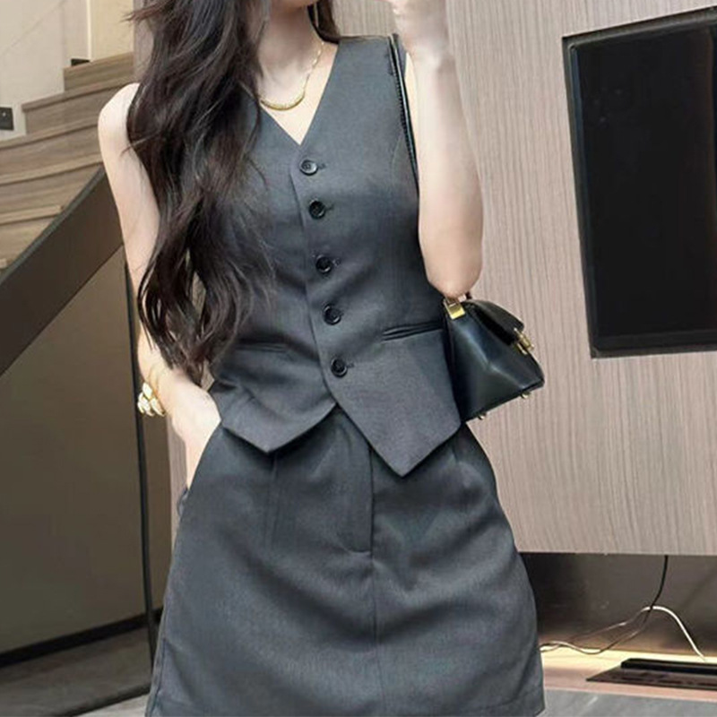 Setelan Rompi Gaya Desain Korea Model Baru Musim Panas 2025 Rok Pendek Celana Pendek Pakaian Formal Komuter Setelan Dua Potong Trendi