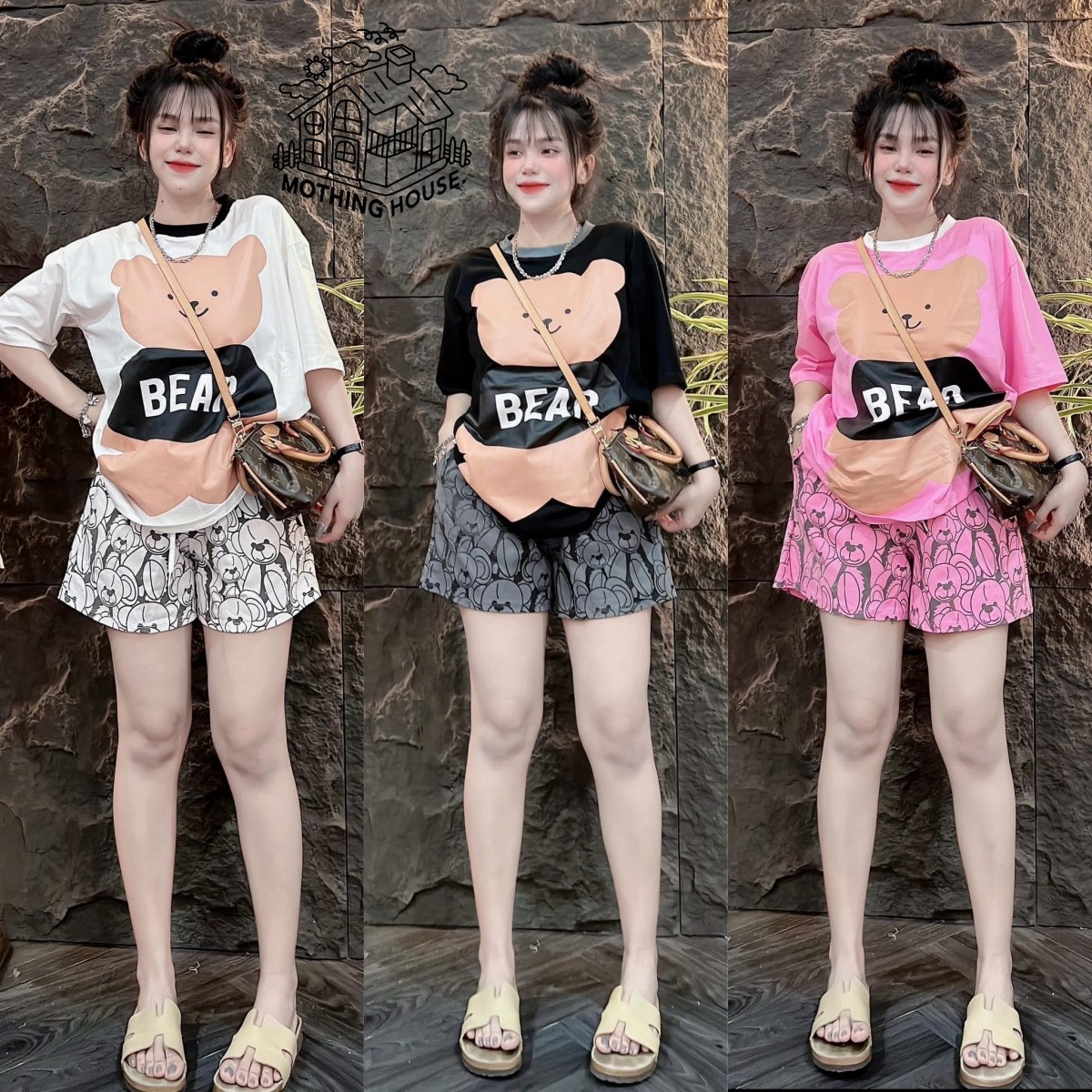 Setelan Fashion Kasual Lintas Batas Wanita Musim Panas Model Baru Motif Beruang Kecil Lengan Pendek T-Shirt Celana Pendek Olahraga Set Dua Potong Instagram Trendi