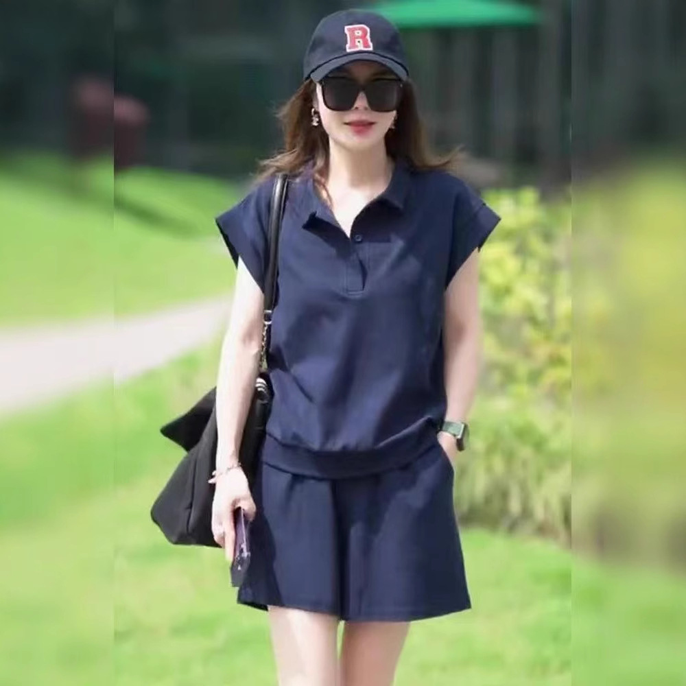 夏季新款大码胖MM套装女士时尚Polo领T恤+运动短裤遮肉显瘦两件套