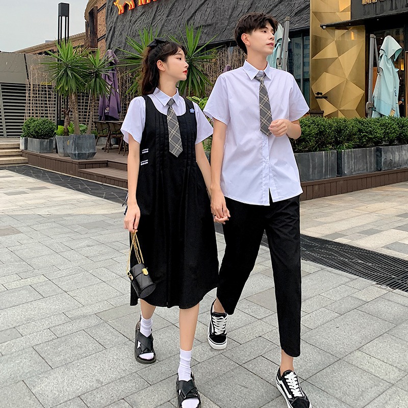 Haohai seragam JK kemeja putih bordir pria dan wanita, kemeja lengan pendek lengan panjang pasangan pakaian seragam sekolah Jepang gaya kuliah