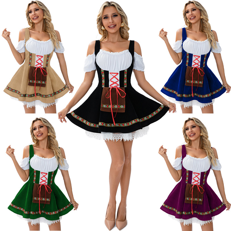 Gaun Gadis Bir Jerman Foto Saku Baru Halloween Pakaian Pelayan Bar Pakaian Oktoberfest Jerman Ukuran Besar