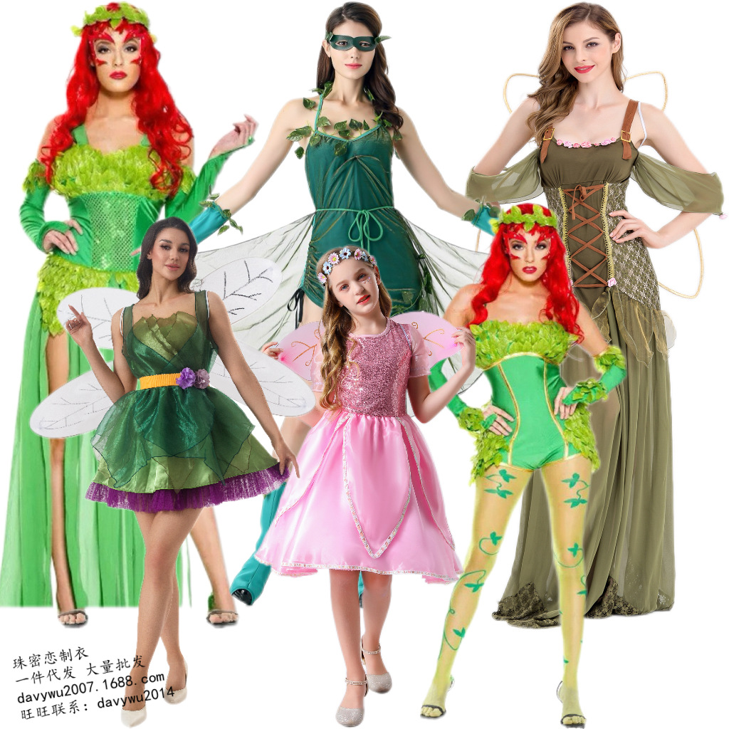 Shot asli baru kostum Halloween ukuran terpisah, kostum putri malaikat bunga hijau hutan, kostum penampilan DS