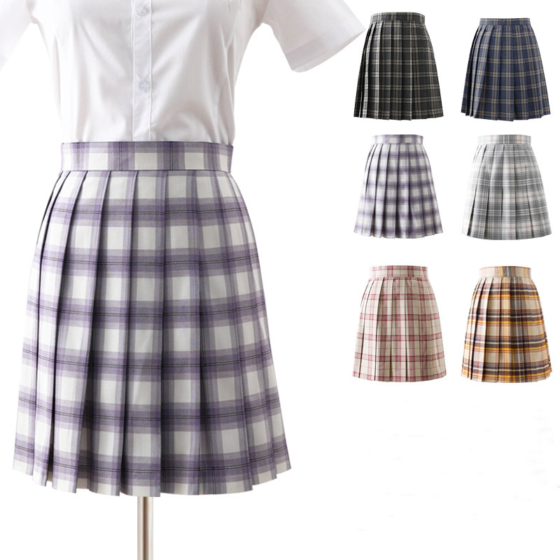 Seragam JK gaya sekolah rok kotak-kotak siswi rok lipit rok seragam sekolah rok setengah panjang rok A-line gaya Jepang segar dan manis