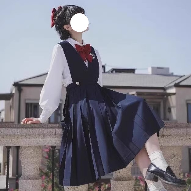 Rok proteksi susu dasar Orthodox JK gaun tali seragam rok berlipat Perlindungan dada rok panjang biru laut hitam