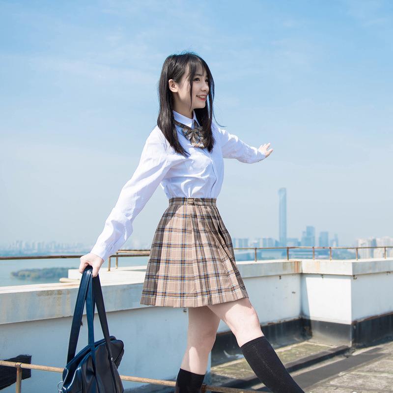 Setelan seragam sekolah gaya Jepang dan Korea, setelan seragam pelaut, rok gaya kuliah, baju putih kotak-kotak, rok jk