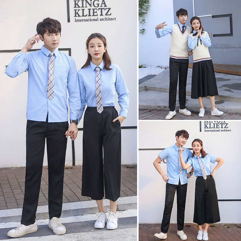 Setelan Seragam Kemeja Warna Putih Setelan Seragam JK Setelan Dua Potong Desain Musim Panas Gadis Pedas Model Baru Terlihat Langsing