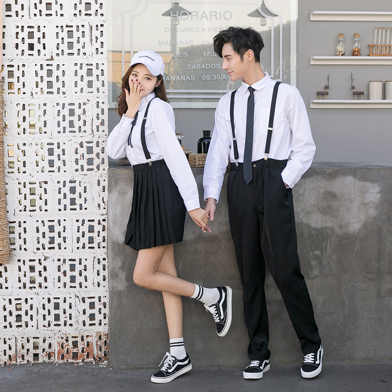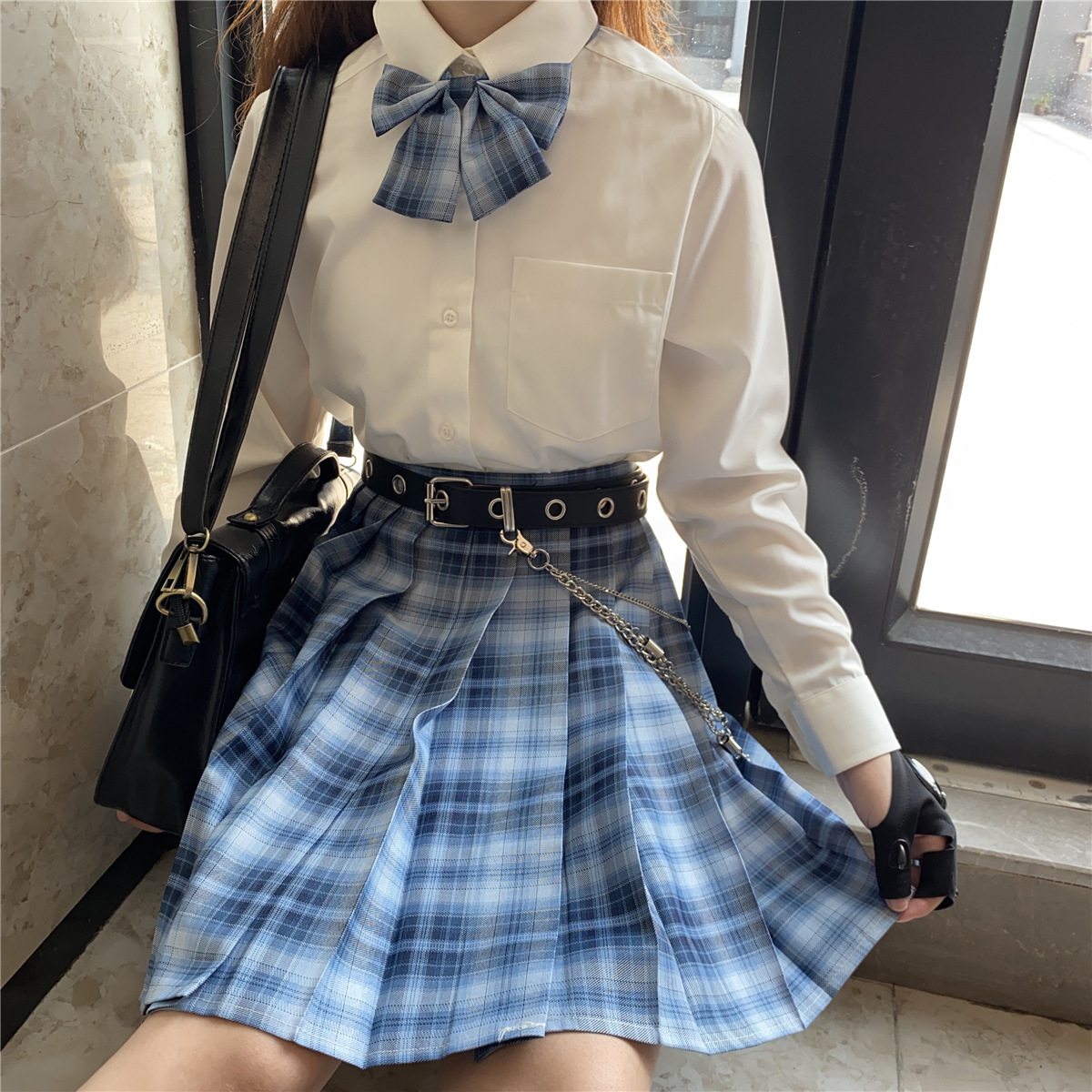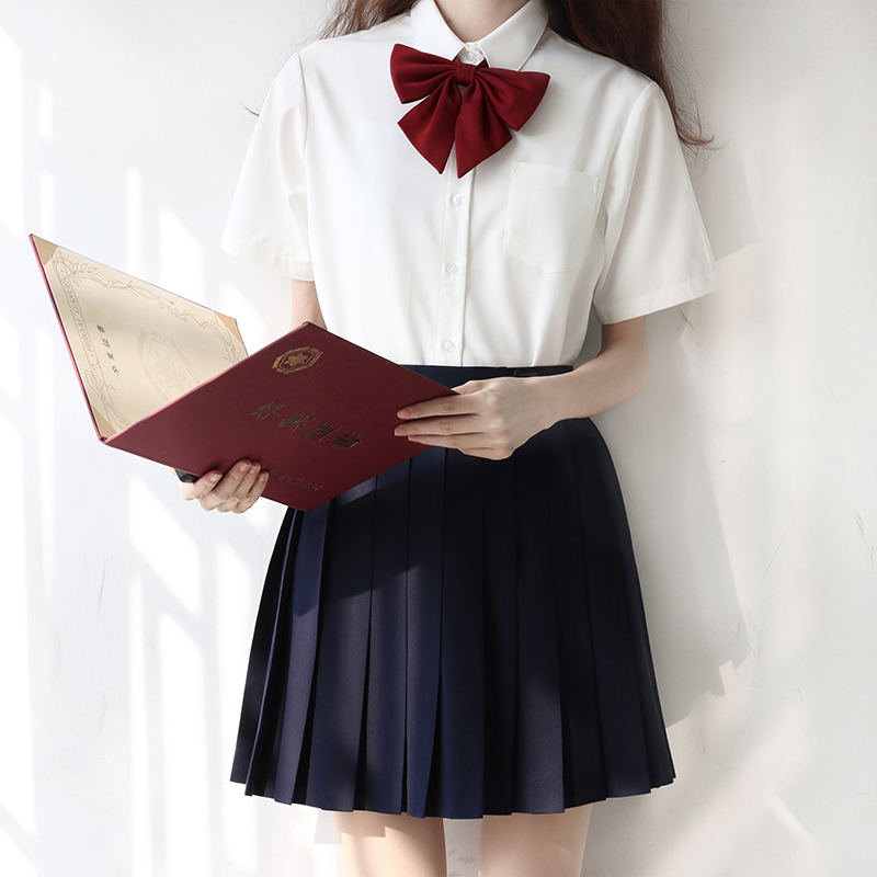 Kemeja putih gaya preppy Jepang, seragam kelas dasar rok lipit serbaguna jk seragam wisuda