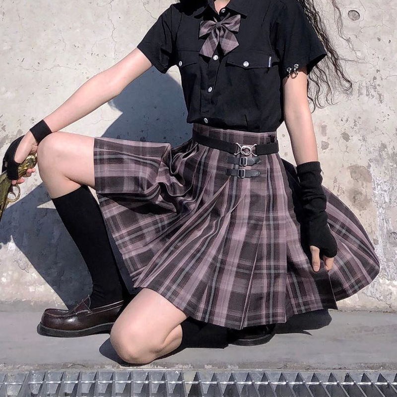 Jk rok seragam ungu asli, rok seragam kotak-kotak jk, setelan dasar musim gugur dan musim dingin, rok lipit manis sekolah untuk siswa