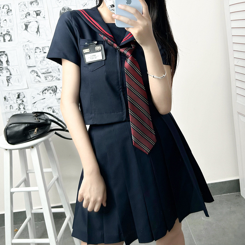 Setelan seragam pelaut gaya Jepang, seragam sekolah lengan pendek, seragam penampilan, rok berlipat, pakaian siswa musim panas