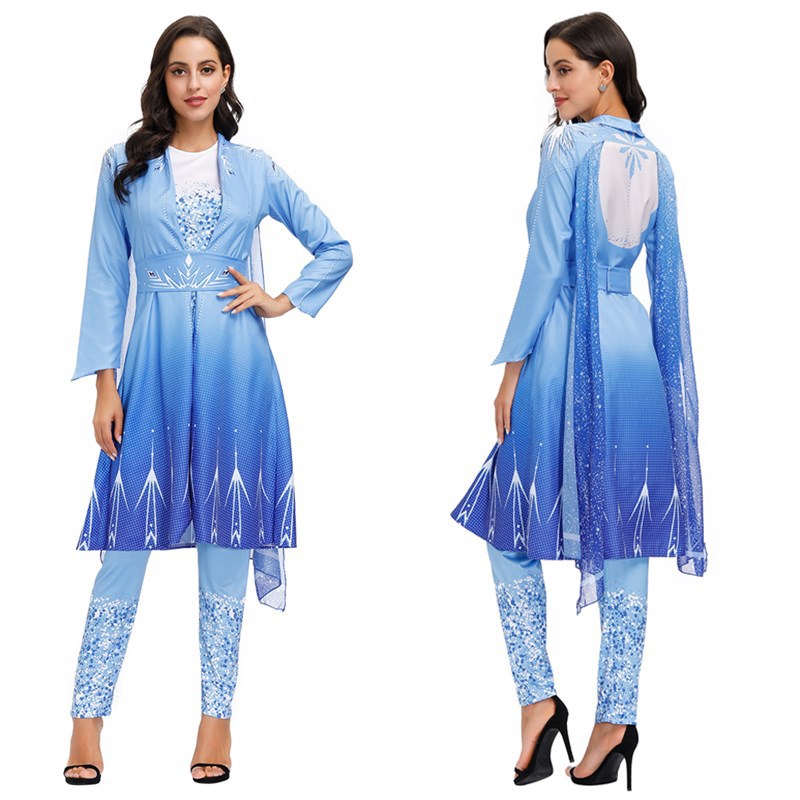 Gaun putri Elsa, kostum Halloween ukuran terpisah es dan salju 2