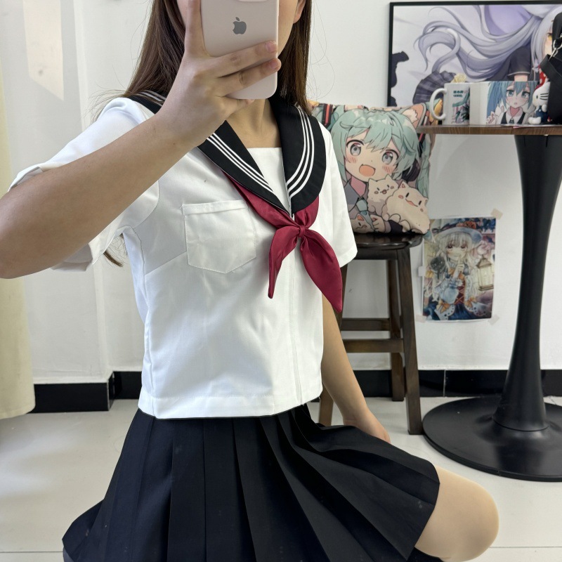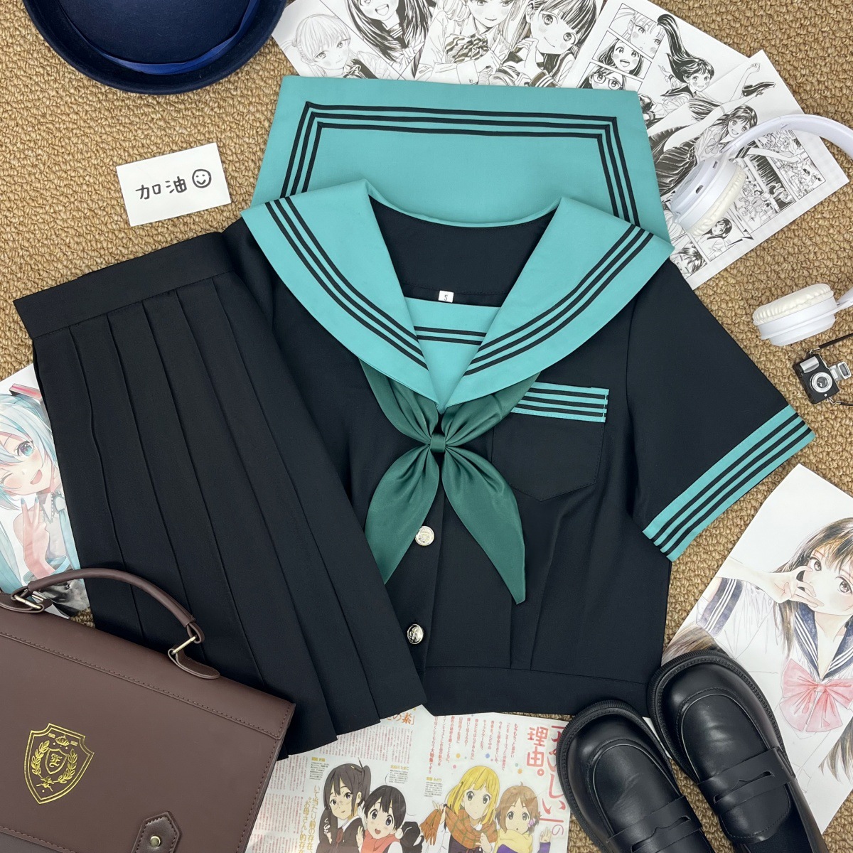 Seragam JK Orisinal Kerah Hitam Putih Tiga Pakaian pelaut Dasar Gaya Jepang Setelan Tengah Seragam Kelas Pelajar Gaya Kampus