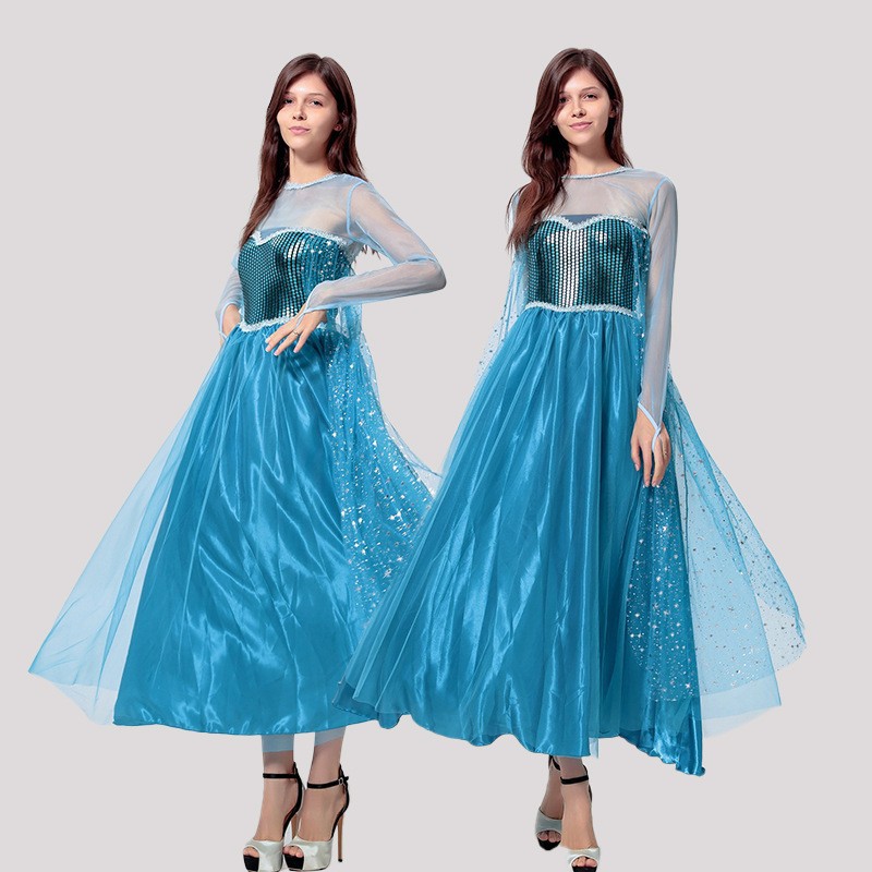 Cosplay Halloween, kostum putri Frozen Anna Elsa blue dress, bermain peran
