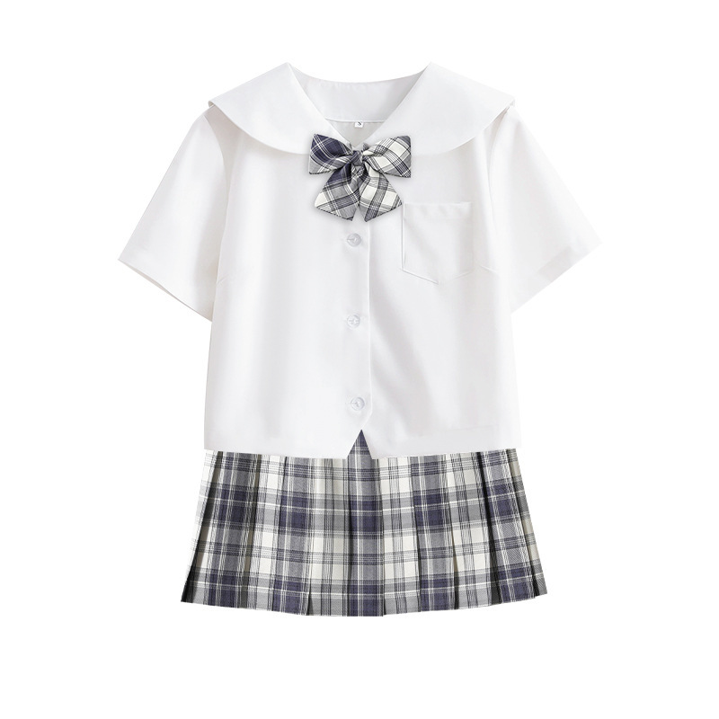 Setelan pelaut gaya preppy dasar, setelan seragam JK, lengan pendek, seragam sekolah murid, rok lipit