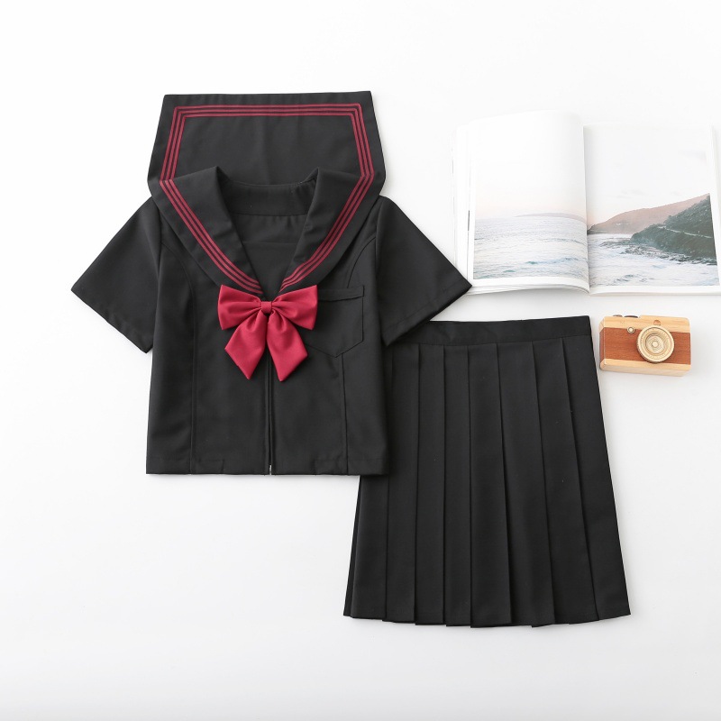 Seragam JK Asli Orisinal Jepang Orthodox Pakaian Menengah Merah Tiga Pakaian Sailor Gaya Sekolah Gadis Buruk Pakaian Wisuda