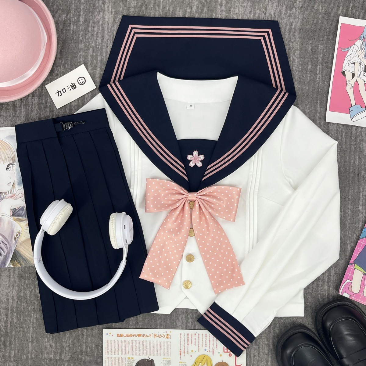 [Hanami Sakura] Seragam JK Asli Gaya Jepang Lipit Gaya Organ Sweet Pakaian Pelampung Gaya Sekolah Pakaian Wisuda Wanita
