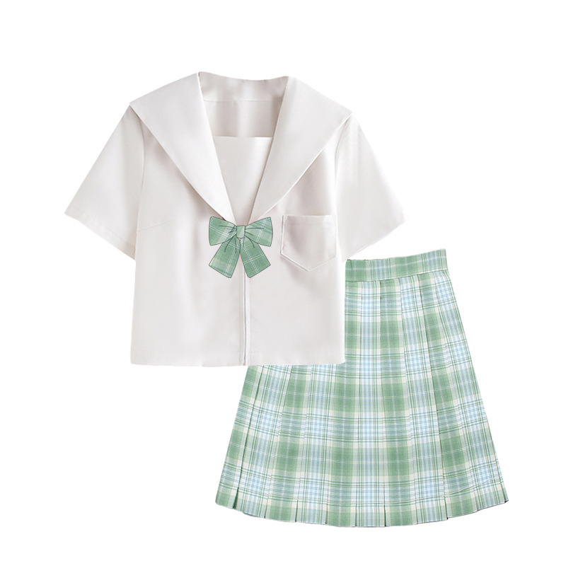 Gaya Jepang putih tanpa Ben Guan Xi placket JK rok seragam setelan pelaut dasar rok kotak-kotak gaya Universitas setelan