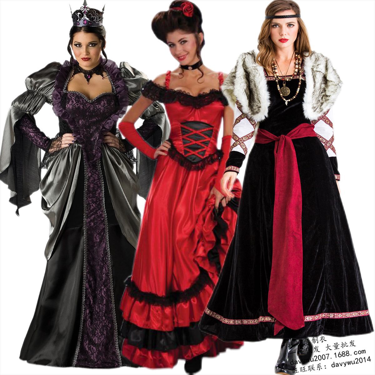 Gambar asli gaun pengadilan Eropa retro baru gaun putri putih salju generasi pakaian Ratu bola Halloween