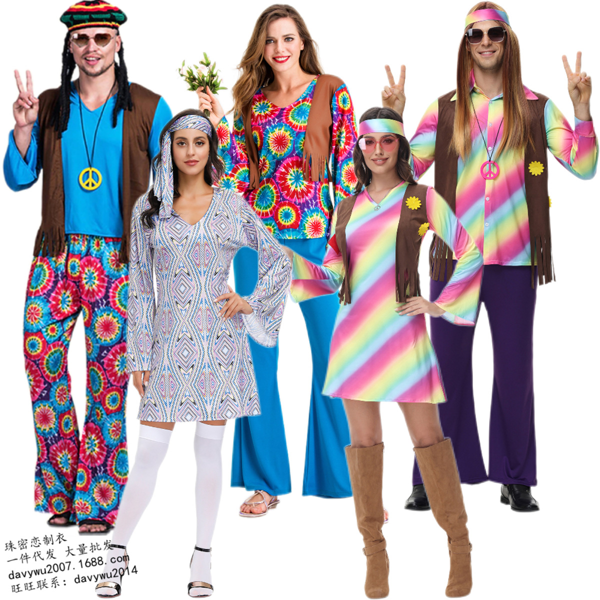Cross-border kostum hippie wanita, bar disko retro DS jazz dansa catwalk kostum penampilan panggung