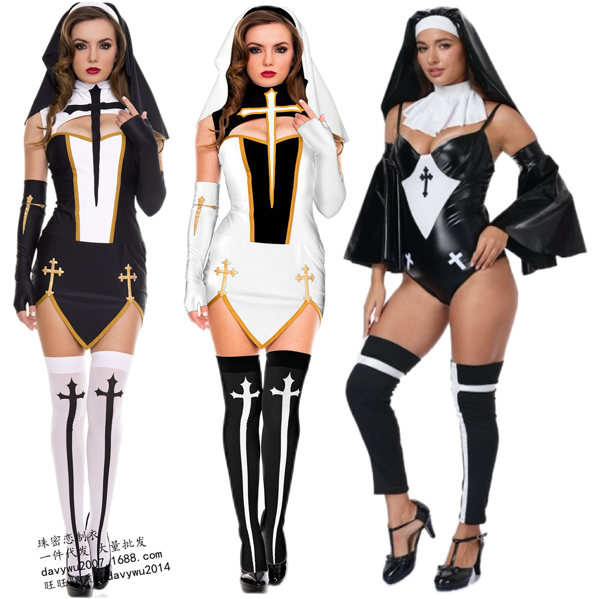 Lingerie seksi grosir, pakaian pertunjukan COSPLAY, pakaian seragam permainan biarawati baru, pakaian Halloween baru