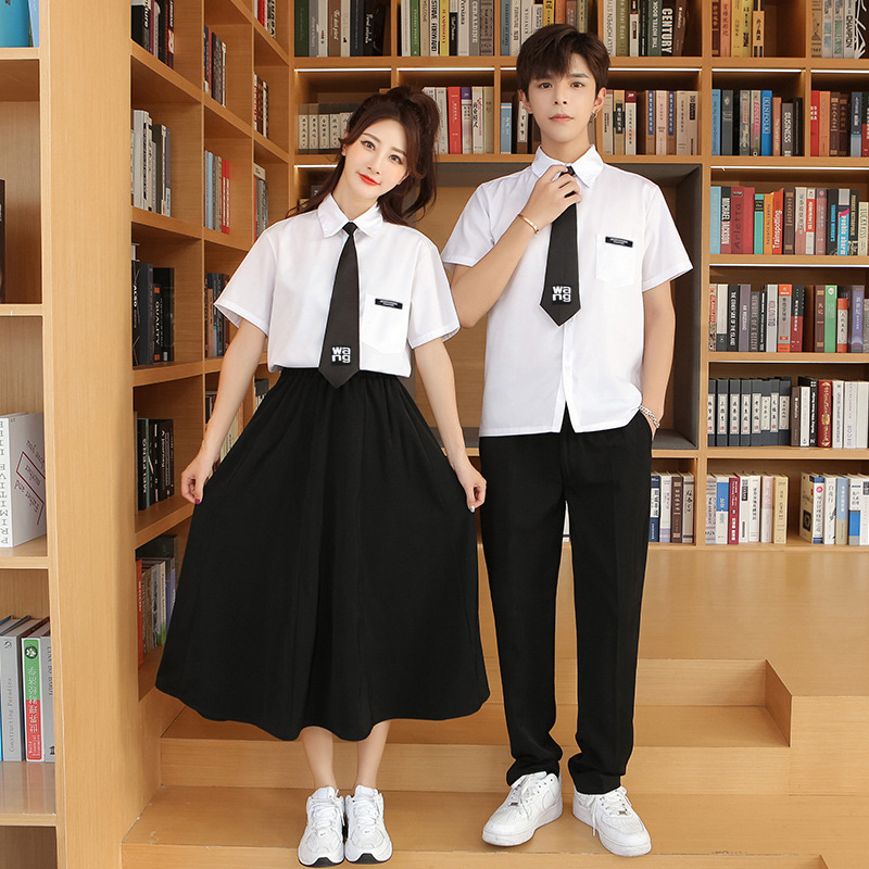 Setelan Pasangan Setelan Seragam Kelulusan SMP dan SMA Model Sederhana Rok Panjang Kemeja Putih Gaya Kampus Seragam Siswa SMP