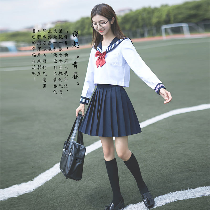 Seragam sekolah kelas pelajar wanita musim semi dan musim panas seragam jk seragam pelaut wanita setelan rok berlipat lembut Ortodoks Jepang gaya Universitas