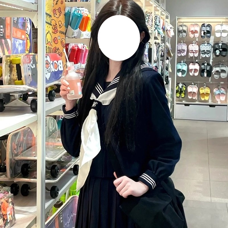 Seragam pelajar putri bergaya Jepang, seragam pelaut dasar tiga garis putih, seragam JK asli autentik, seragam kelas bergaya akademi untuk wanita