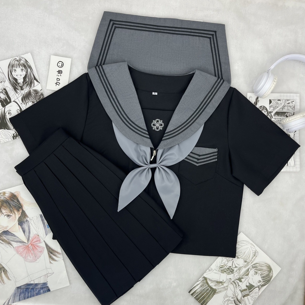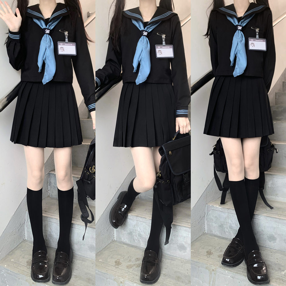 Setelan seragam pelaut cyanosis biru dongker tiga Jepang JK klasik dasar (grosir)