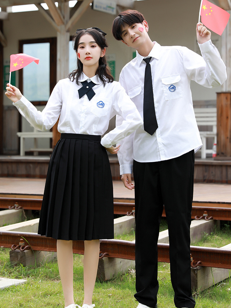 ASIN Taiwan kaus bordir terpasang gaya sama Universitas Normal seragam sekolah lengan pendek lengan panjang pria dan wanita gaya kuliah pakaian kelas wisuda