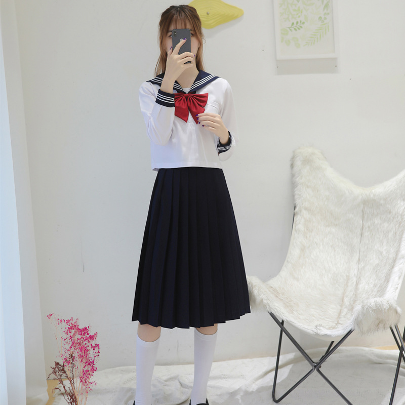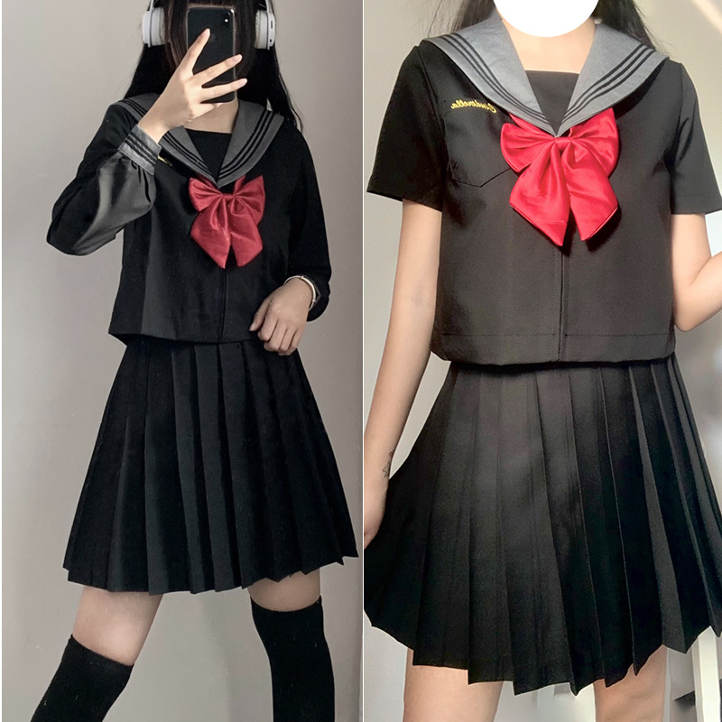 Penjualan langsung pabrik rok seragam hitam tiga jk orthodoks putih setelan pelaut Jepang seragam sekolah gaya Universitas setelan baju buruk wanita