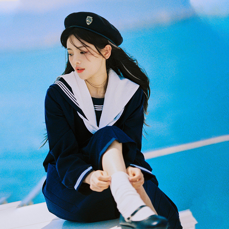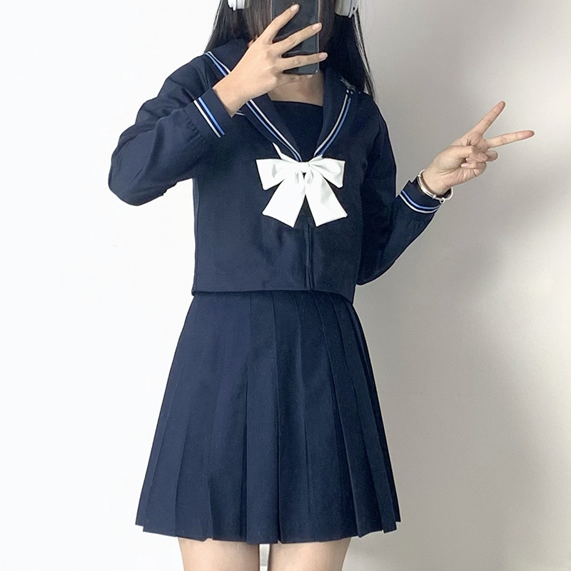 Seragam sekolah gaya Jepang, seragam sekolah jk, paus biru tua, setelan seragam kelas, gaya kuliah, pakaian pelaut jk, lembut, gaya Jepang, murid perempuan
